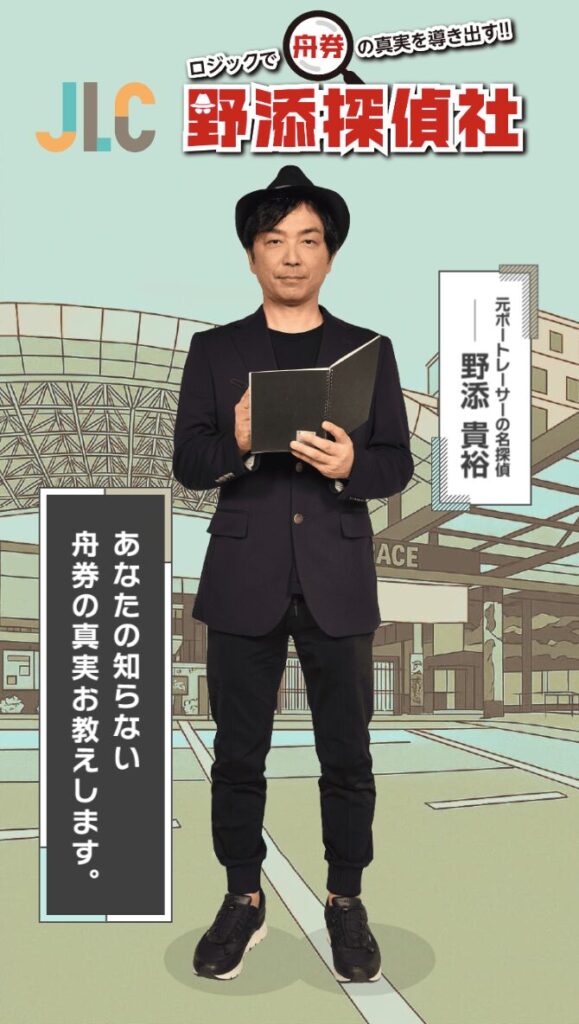 元レーサー・野添貴裕所長が、鋭い視点とロジックで舟券の真実を解き明かすJLCの人気番組「野添探偵社」。