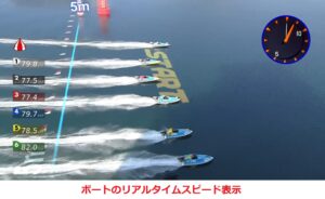 ・リアルタイムスピード:スタート展示及び本番レースのスタート前後に各ボートのスピードを表示